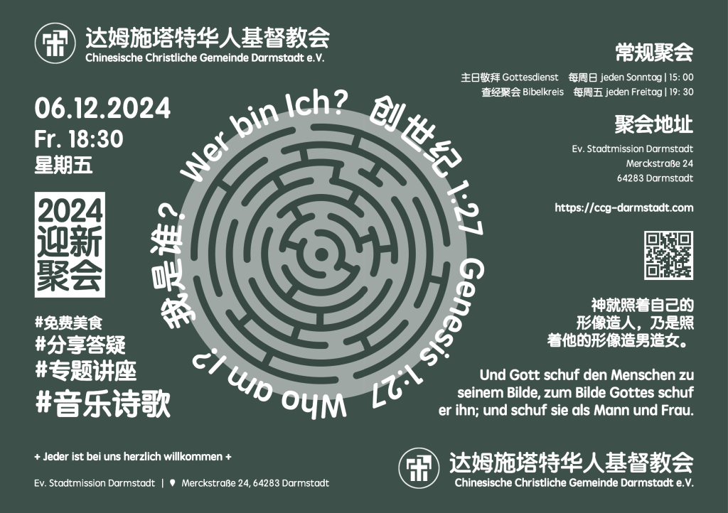 欢迎参加达姆施塔特华人基督教会2024年12月6日的迎新聚会!